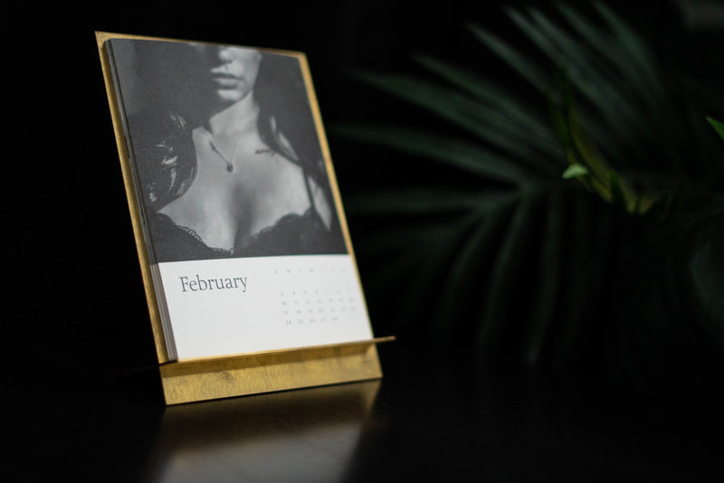 Choose 12 images for this modern desk-top calendar. Brass easel calendar, with thick archival 5x7 paper with a matte finish.